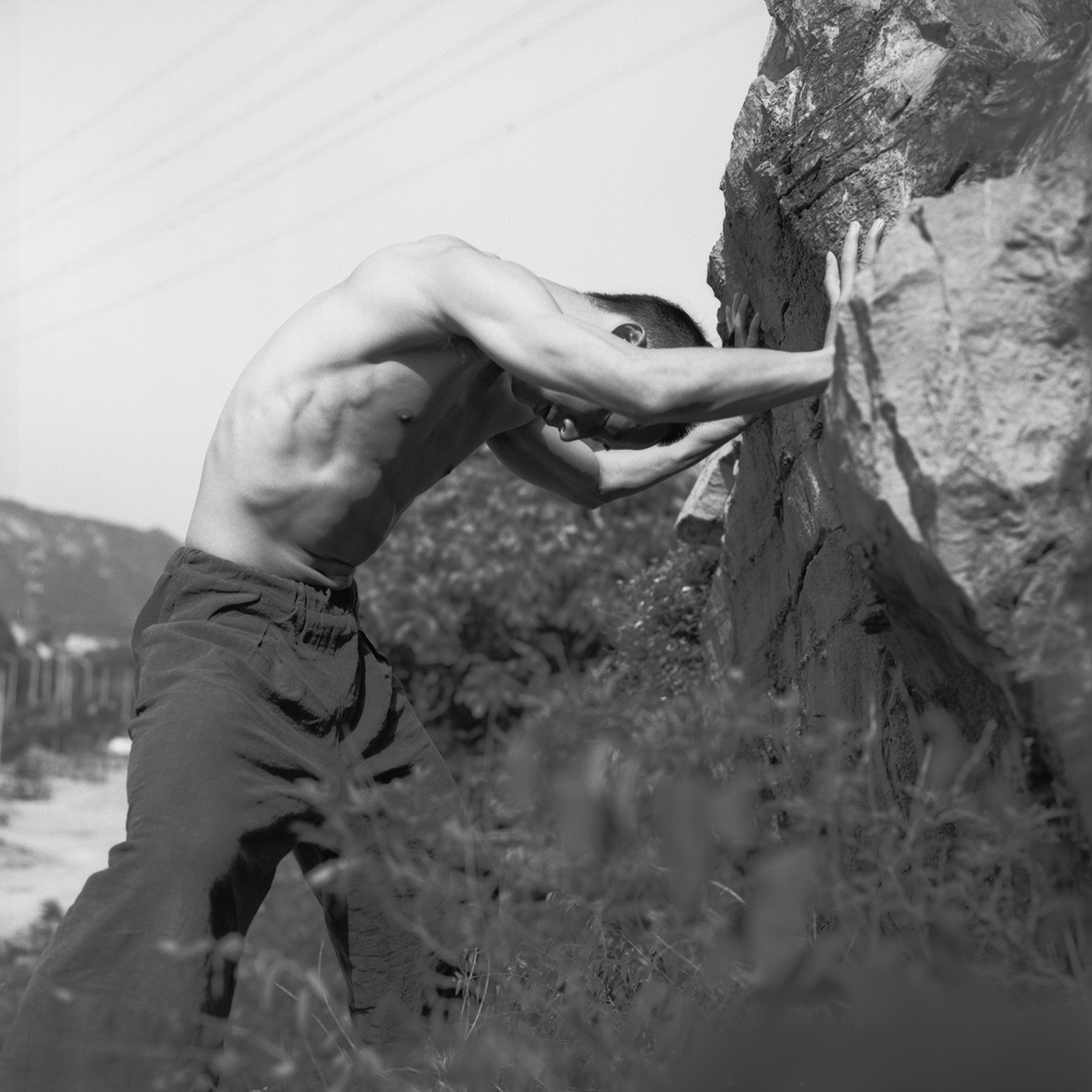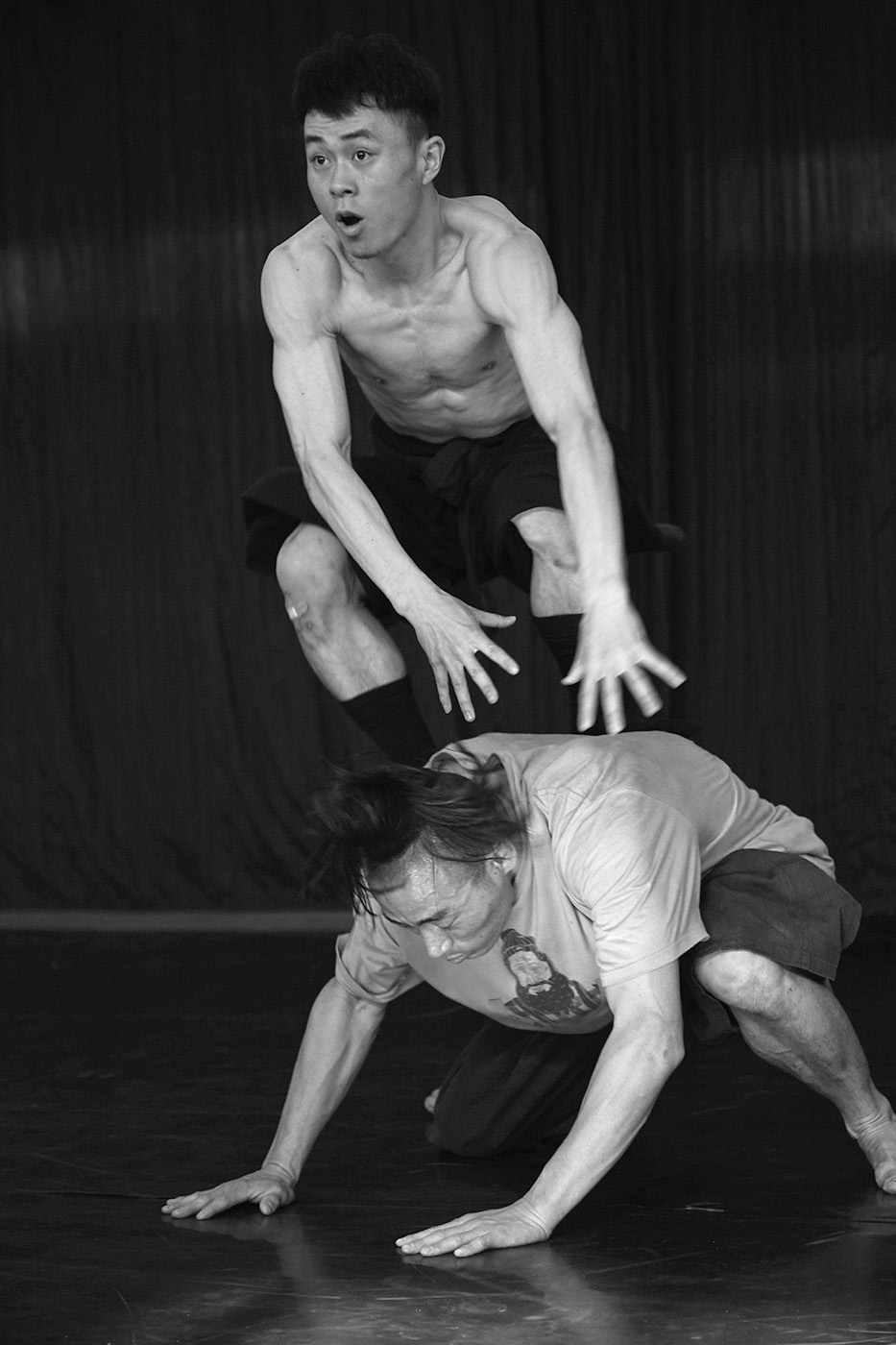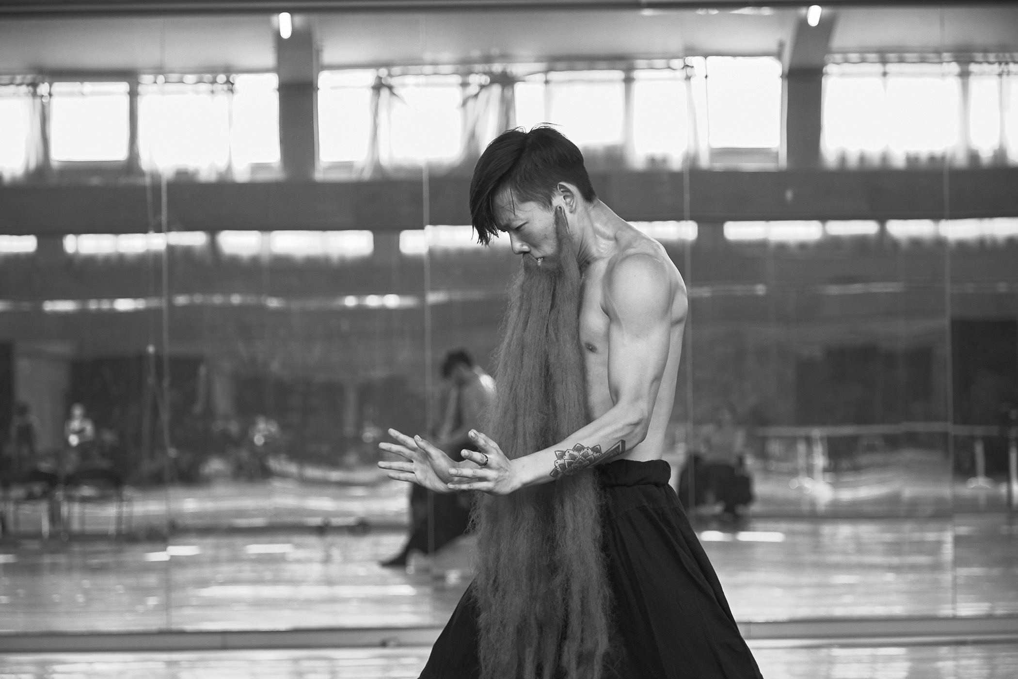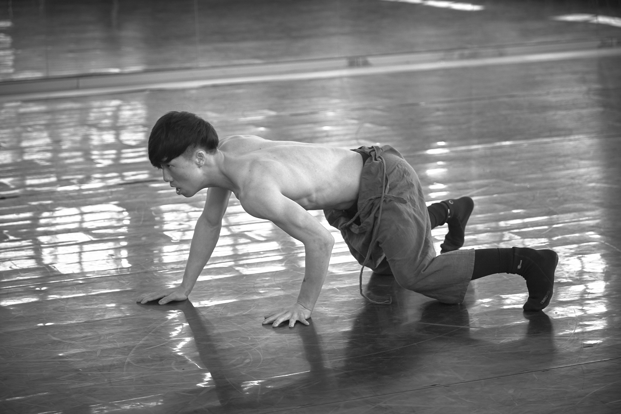 一次契机,2016 年走入了北京现代舞团,开始了舞者的拍摄项目,当时拍摄的时候我也时常问自己为什要拍,我要从中寻找什么?这些优秀的舞者从来不缺乏漂亮的动作照片,也不缺乏表达艰苦训练的煽情照片。当时我也不是很确定自己在他们身上寻找着什么,但是我很清楚自己不要什么。因此,我的念头就是先做,也许有一天会自然显现出来。阶段性的拍了2年。至今已经隔了5年,回头整理这些图像,我似乎从中发现了最初触动我内心的东西--其实就是他们身上的那份简单、人与人之间的温情和真诚。那个时期我也是很喜欢和他们在一起,在一起时就会把那个嘈杂又荒谬的现实生活完全抛之脑后,可以说舞团当时也变成了我自己心灵的一个栖息地。只有去那我才能感受到一种纯粹,让自己似乎还能有一点着落,那种感受就像在茫茫大海发现了一座岛屿,终于能靠下岸了 ….