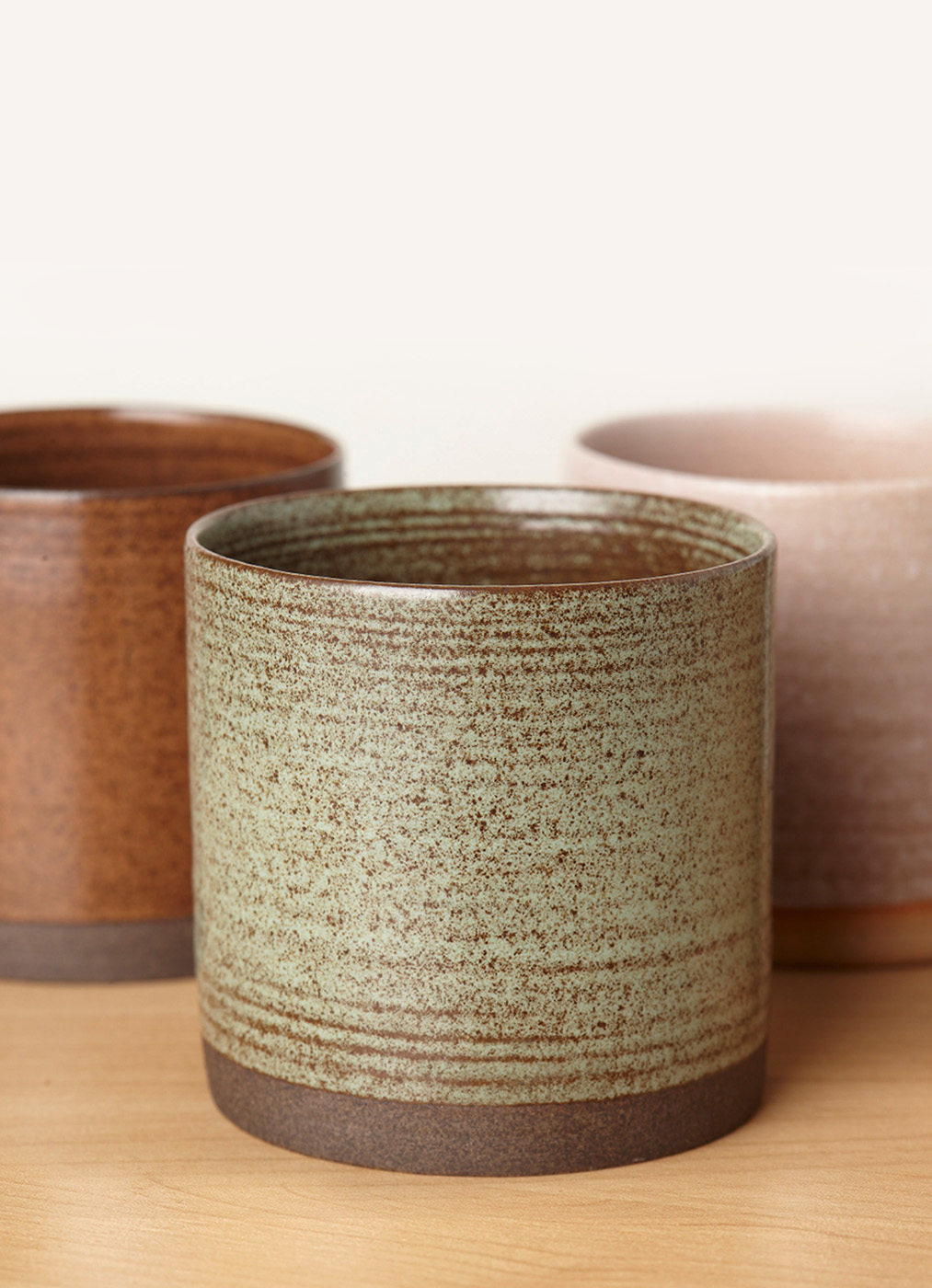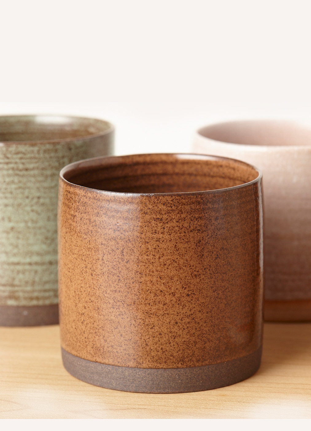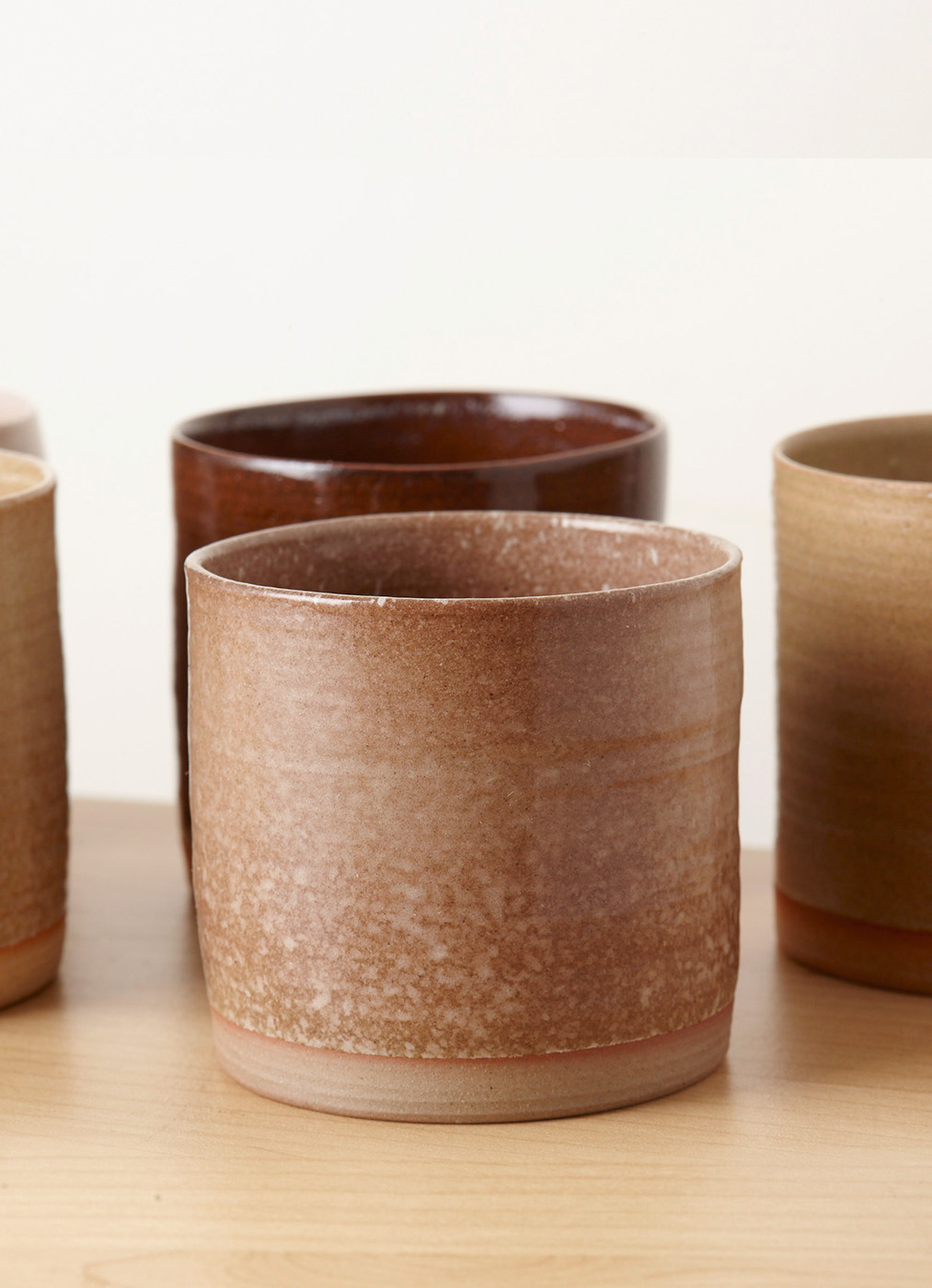 这一组陶瓷杯,以四季为灵感,不是直接描摹春花秋叶,而是取那一抹流动的感受。色彩沉静,如风拂过原野,不喧哗,却携着土地的温度。