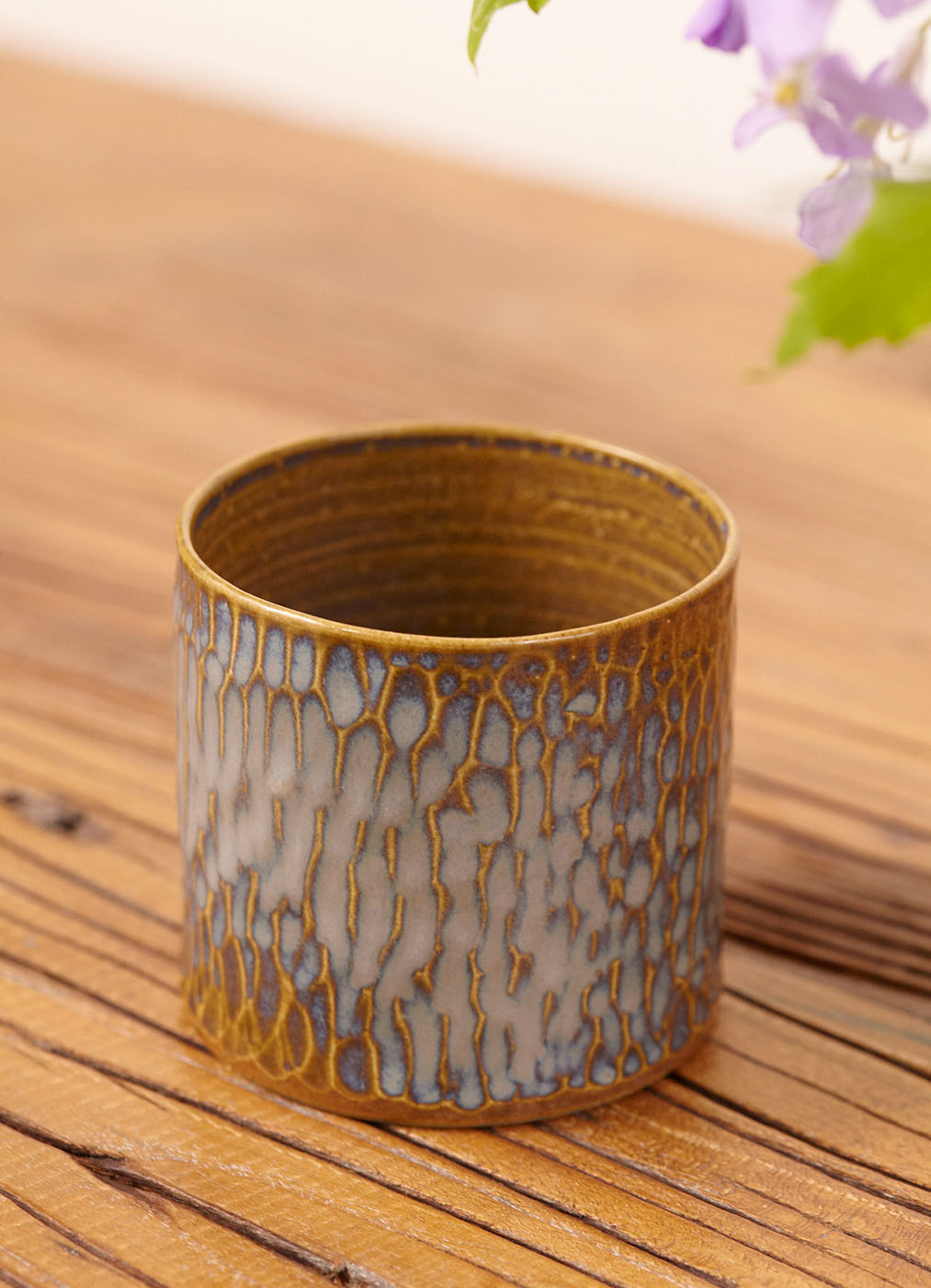 器身跟随情绪运用刀削,在坯体表面留下粗粝的肌理,与斑驳的釉色共同构建出古木般的时空记忆,亦如苔藓覆石的共生关系,细密开片如菌丝在泥土中悄然蔓延。